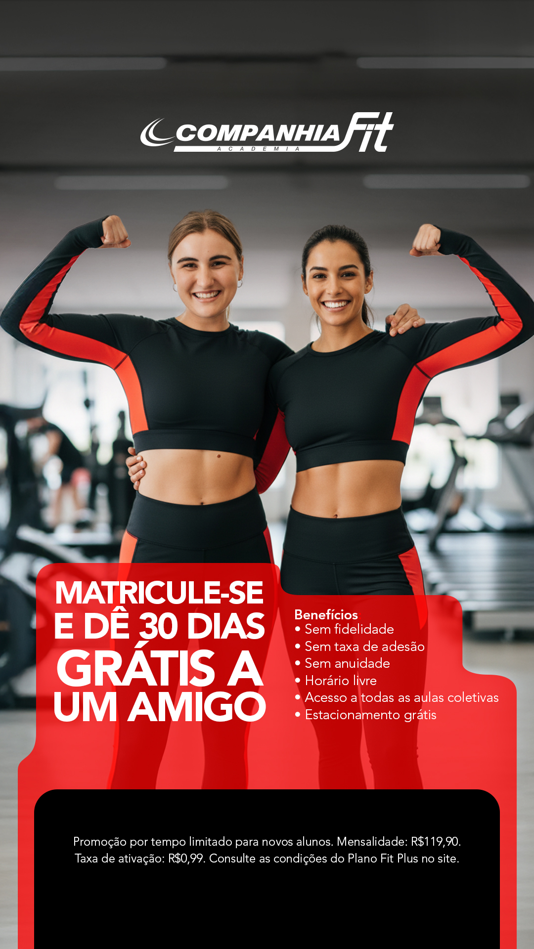 Sem letras miúdas. Apenas o melhor custo-benefício para você treinar com qualidade.